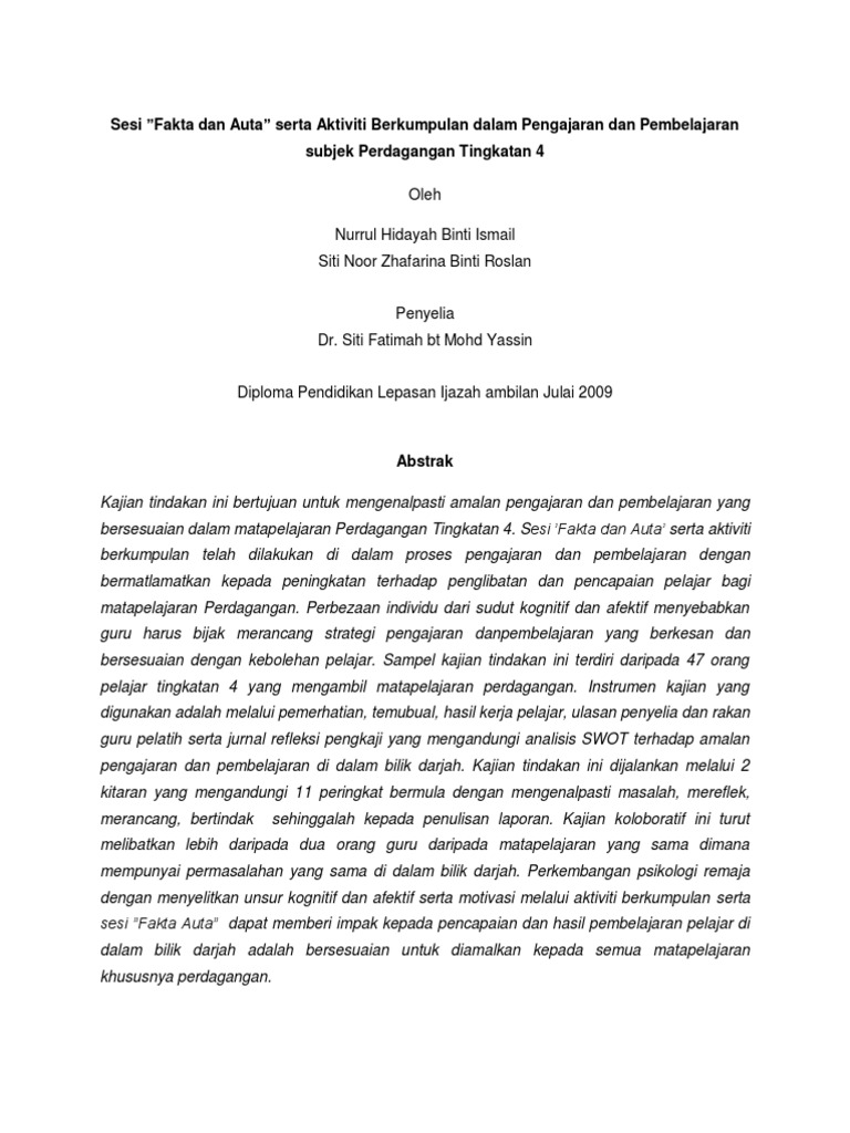 Kajian Tindakan Aktiviti Berkumpulan Dalam P P Subjek Perdagangan Ting 4 Pdf