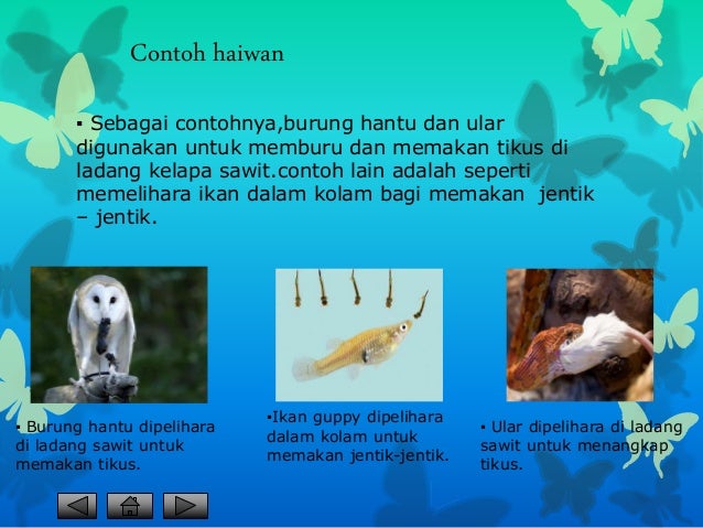 - Menggunakan pemangsa seperti burung hantu untuk mengawal tikus di sawah padi ular di ladang sawit. Jualan peribadi mempunyai kesan yang lebih besar kepada pembeli daripada pengiklanan atau mel terus. Pencemaran dapat diatasi-Dengan kawalan biologi pencemaran alam dapat diatasi.