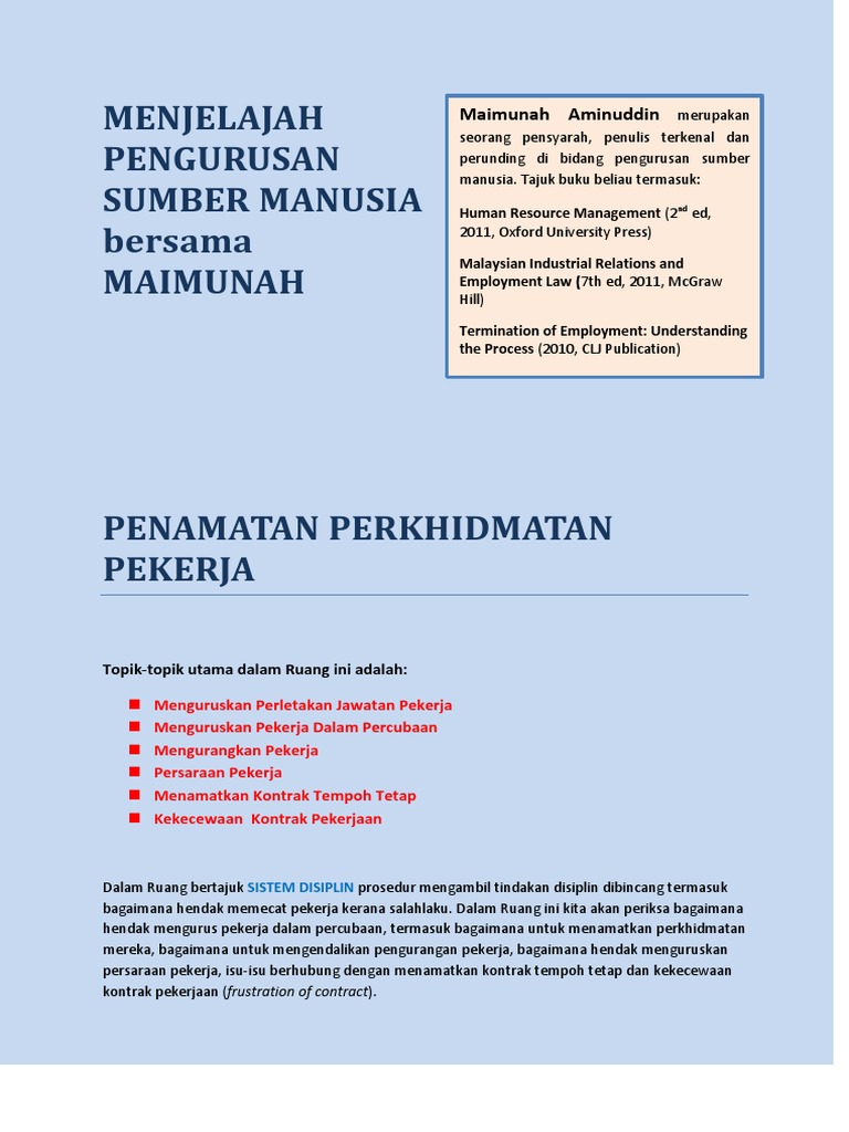 Pengurusan Sumber Manusia merupakan suatu proses yang terancang meliputi aktiviti-aktiviti perancangan tenaga manusia proses pengambilan dan pemilihan latihan dan pembangunan kakitangan pentadbiran upah dan faedah pekerjaan serta perhubungan perusahaan yang bertujuan agar membolehkan mereka memberikan perkhidmatan berkesan. Keadaan berlebihan pekerja yang boleh timbul adalah berikutan daripada beberapa sebab seperti penyusunan semula syarikat pengurangan pengeluaran penggabungan syarikat perubahan. 3 Apabila Menteri menetapkan umur persaraan minimum yang.
