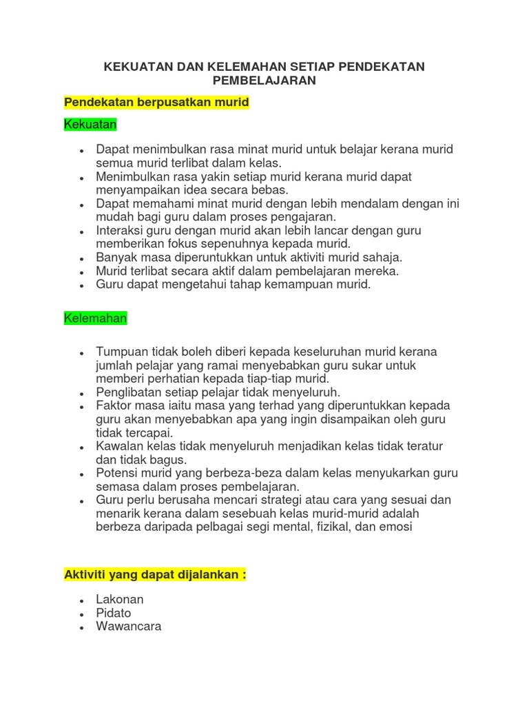 Kekuatan Dan Kelemahan Setiap Pendekatan Pembelajaran Pdf