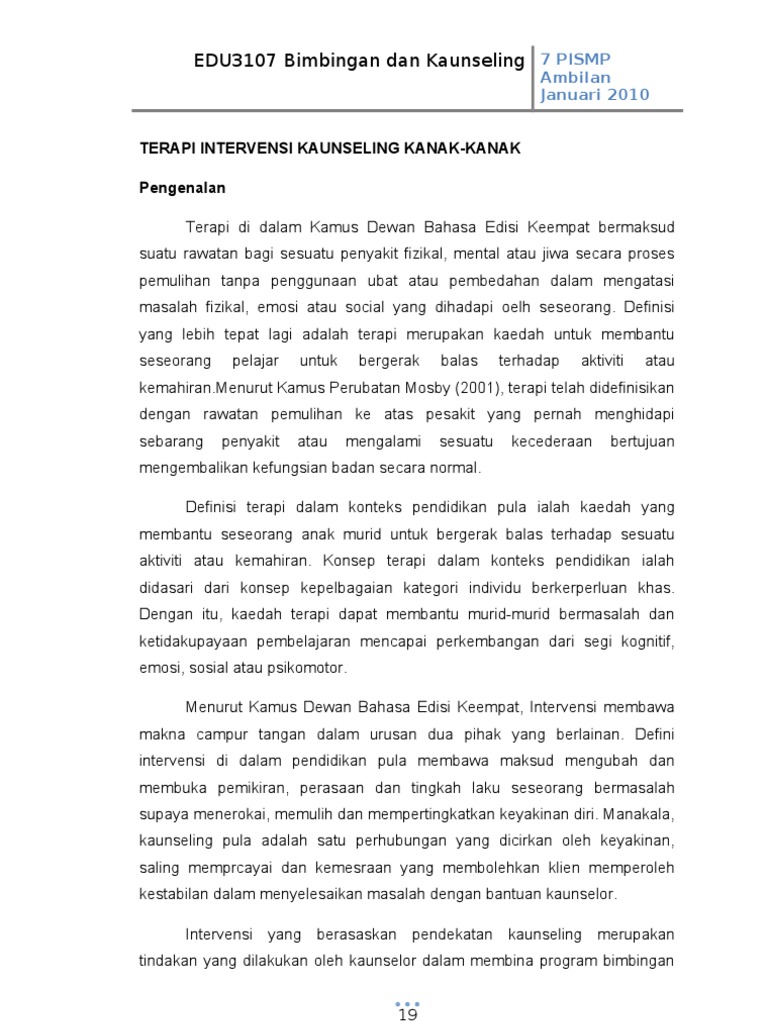 Terapi Intervensi Kaunseling Kanak Pdf